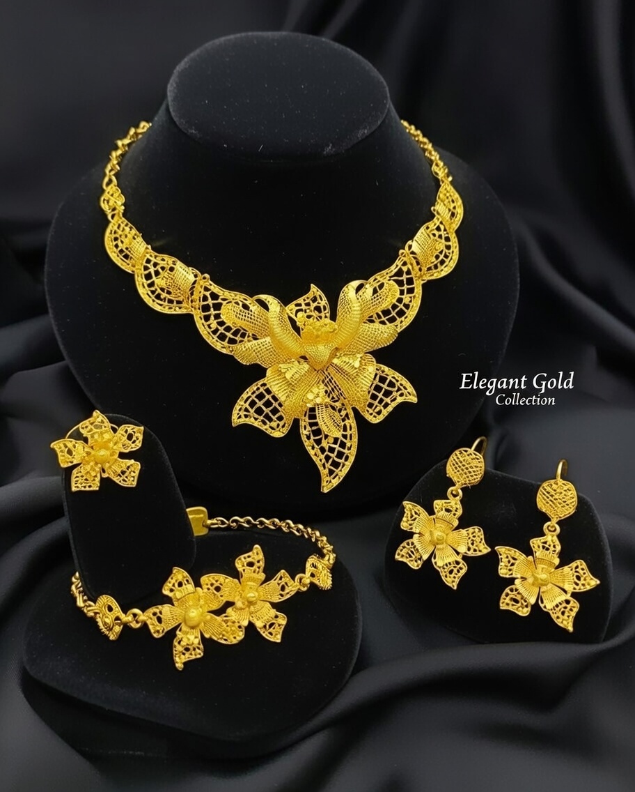 Crafted with refined floral detailing and a radiant gold-tone finish, this jewelry set brings effortless sophistication and charm, perfect for both everyday elegance and special occasions.